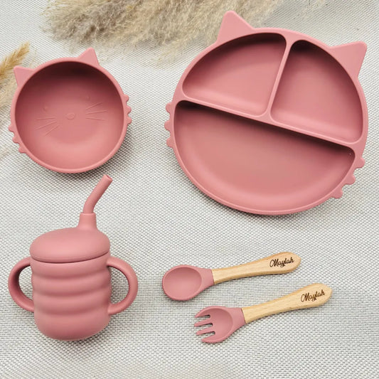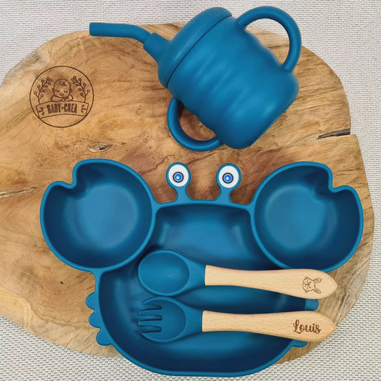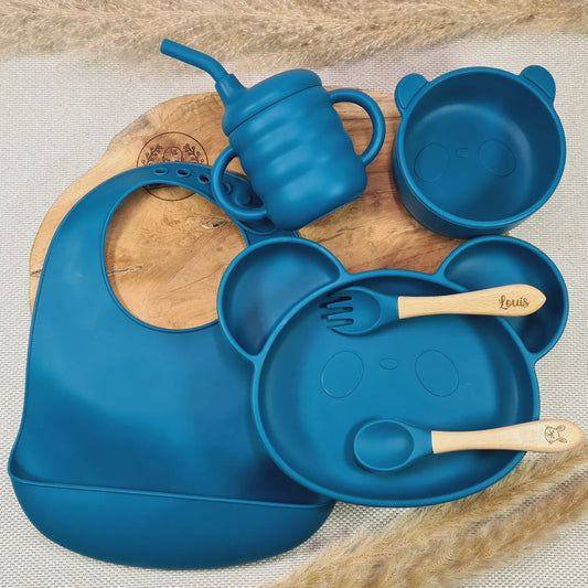 Weil die Sicherheit des Babys an erster Stelle steht: Unser Geschirr aus lebensmittelechtem Silikon, frei von schädlichen Stoffen, ist unzerbrechlich und praktisch für seine ersten Mahlzeiten.