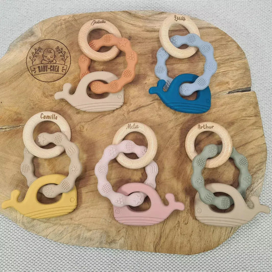 Personalisierter Baby-BeiĂring â Delfin aus Holz & BPA-freiem Silikon