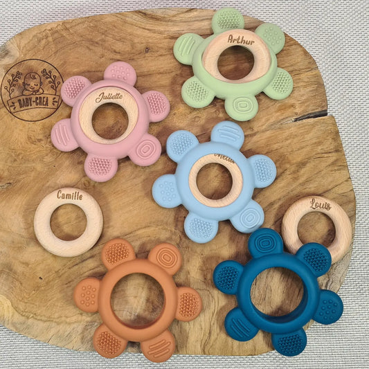 Personalisierter Baby-BeiĂring â Krone aus Holz und BPA-freiem Silikon