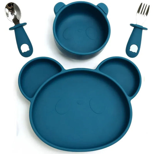 Baby-Mahlzeiten-Set Panda – Teller & Saugnapfschale + Edelstahlbesteck