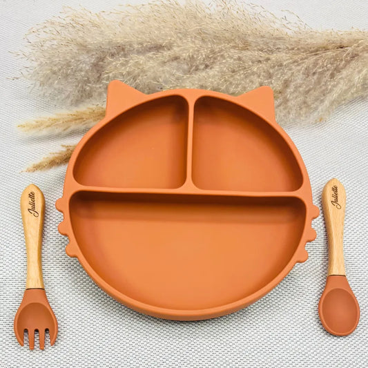 Personalisierte Baby-Mahlzeitbox – Katzen-Teller & Graviertes Besteck