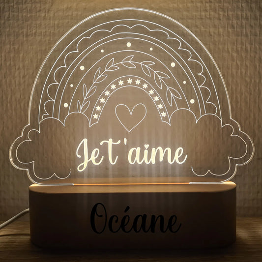 Personalisierte Baby-Nachtlampe mit Namen aus Holz oder LED