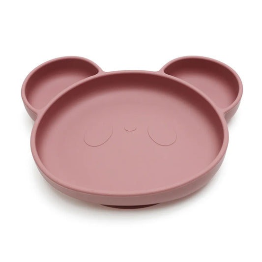 Baby-Teller aus Silikon in Panda-Form Rosa – Rutschfeste Saugnapf-Basis