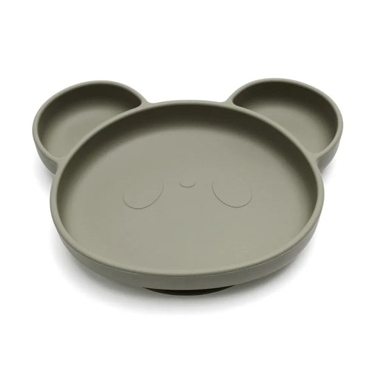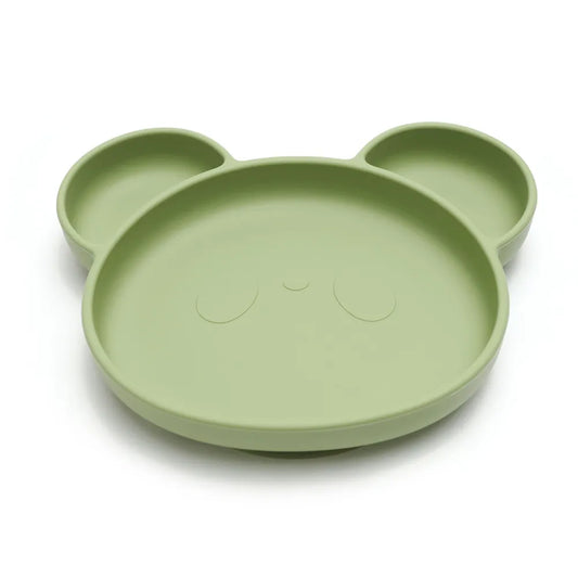 Baby-Teller aus Silikon in Panda-Form Olivgrün – Sicheres Geschirr