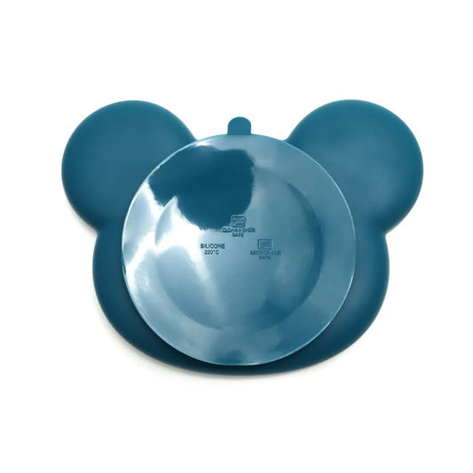 Baby-Saugnapf-Teller aus Silikon Marineblau – Panda-Form
