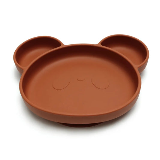 Baby-Teller aus Silikon in Braun Panda-Form – Rutschfestes Geschirr