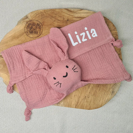 Personalisierter Baby-Schmusetuch – Hasenform – Eingravierter Vorname & Ultraweich