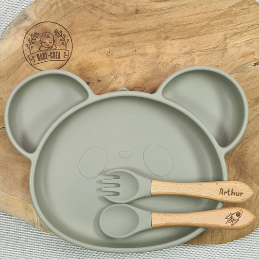 Personalisierte Baby-Mahlzeitbox – Krabbenteller, Pandaschale & Besteck